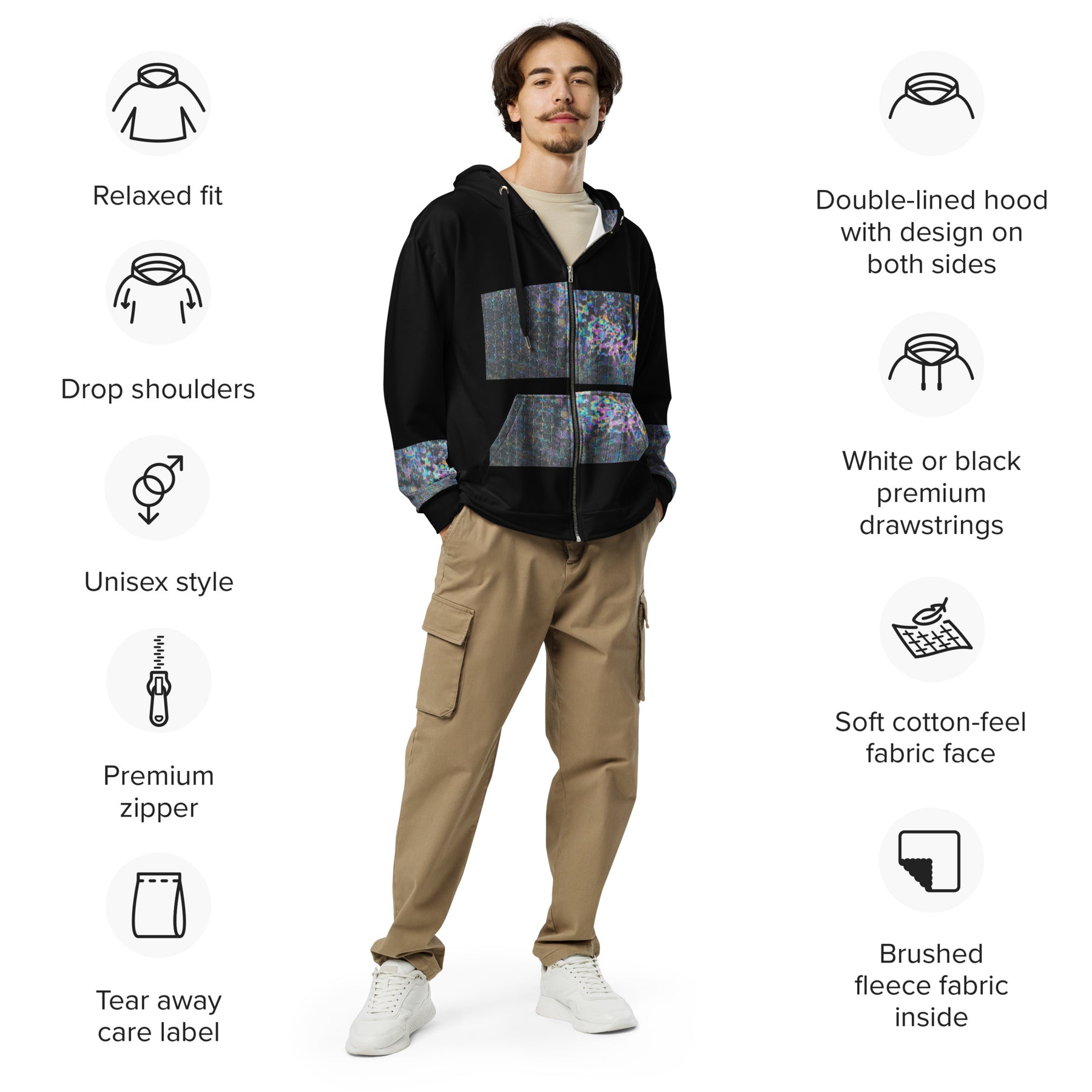 Meet the zip hoodie—a must-have for everyday wear. Crafted from 95% recycled polyester, it combines sustainability with style. Soft both inside and out, this unisex hoodie offers a relaxed fit with drop shoulders. Plus, it’s designed to last, keeping you cozy and fashionable for years to come.