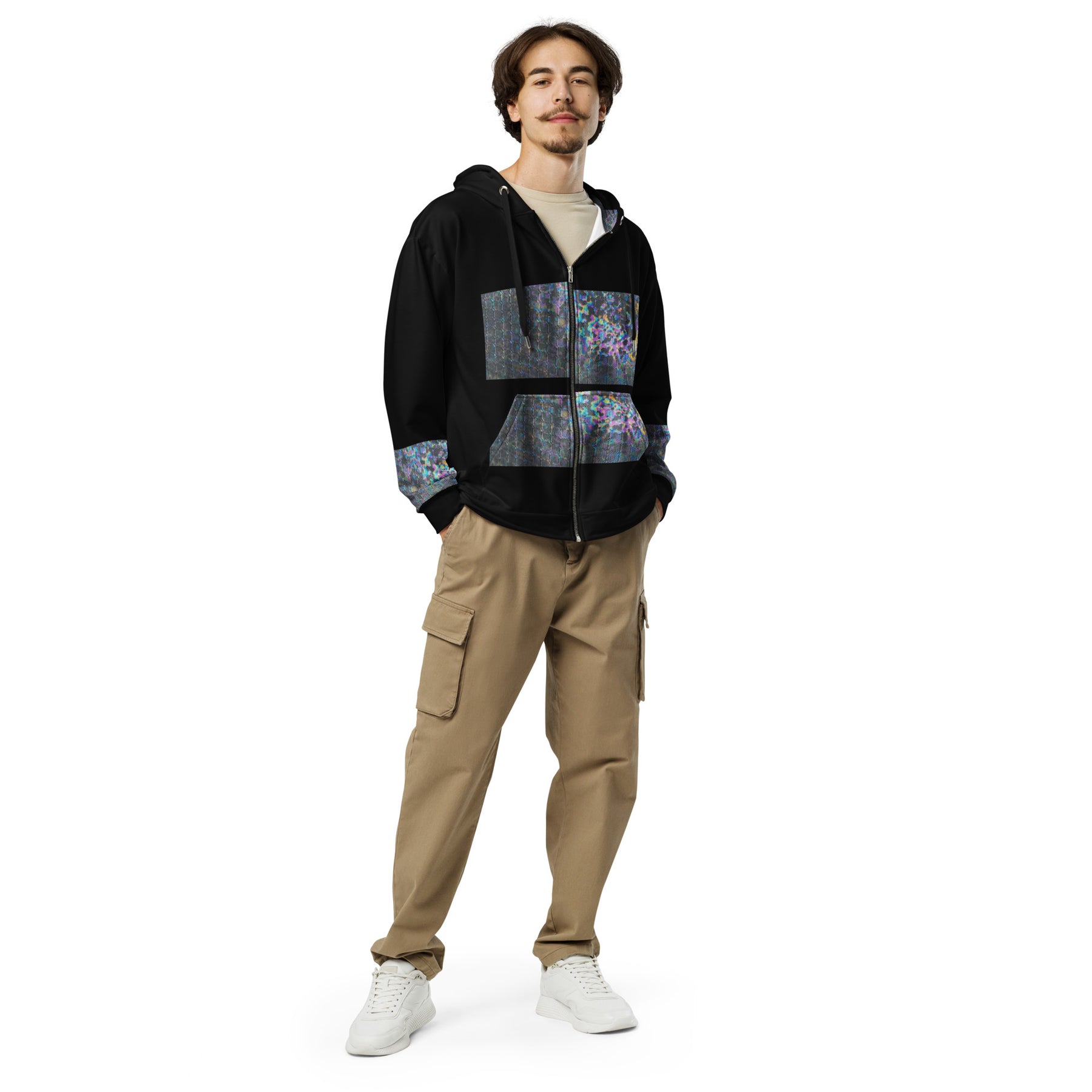 Disclaimer: In areas where the fabric is double-layered (like pockets), details from the inner fabric layer may subtly show through, especially with lighter designs.
