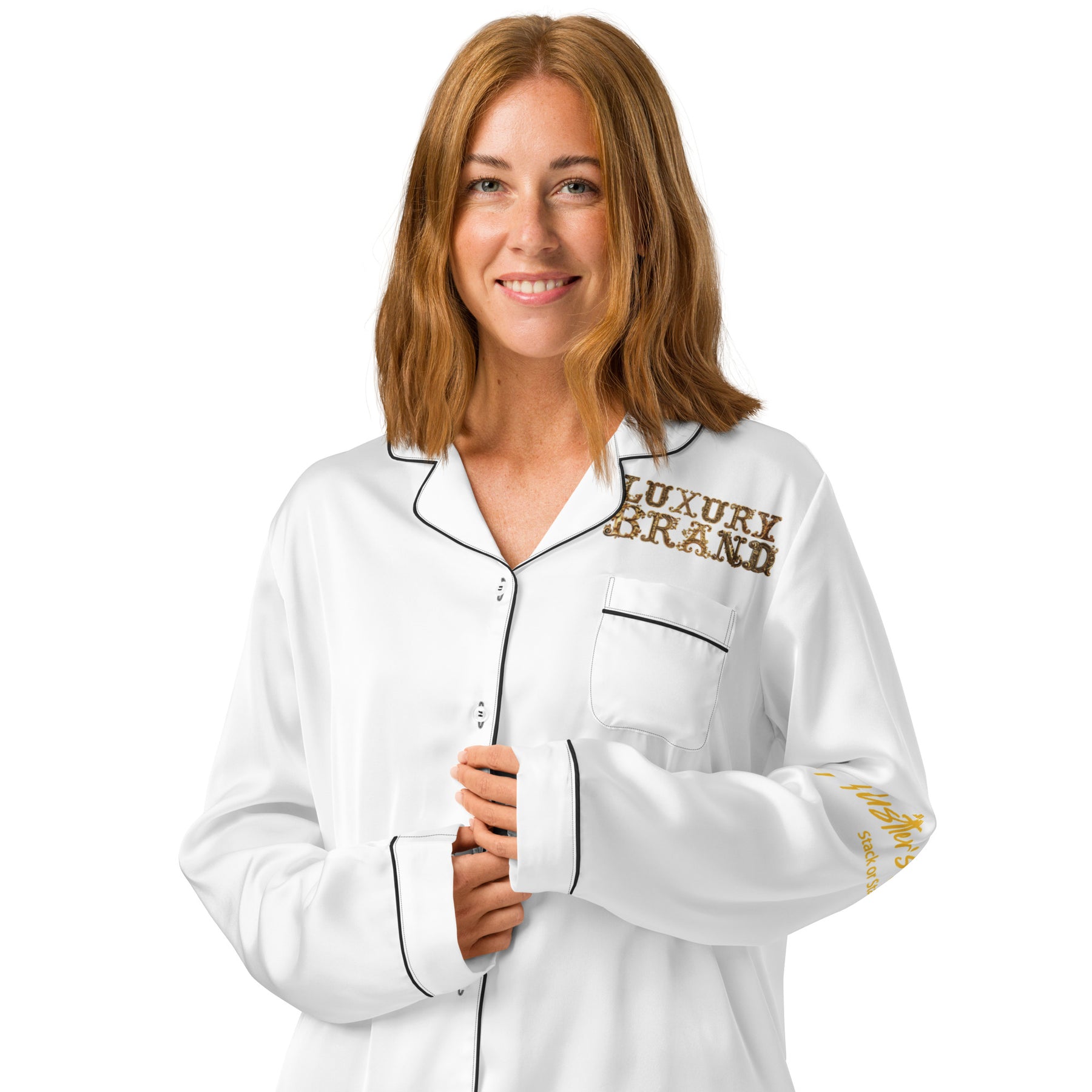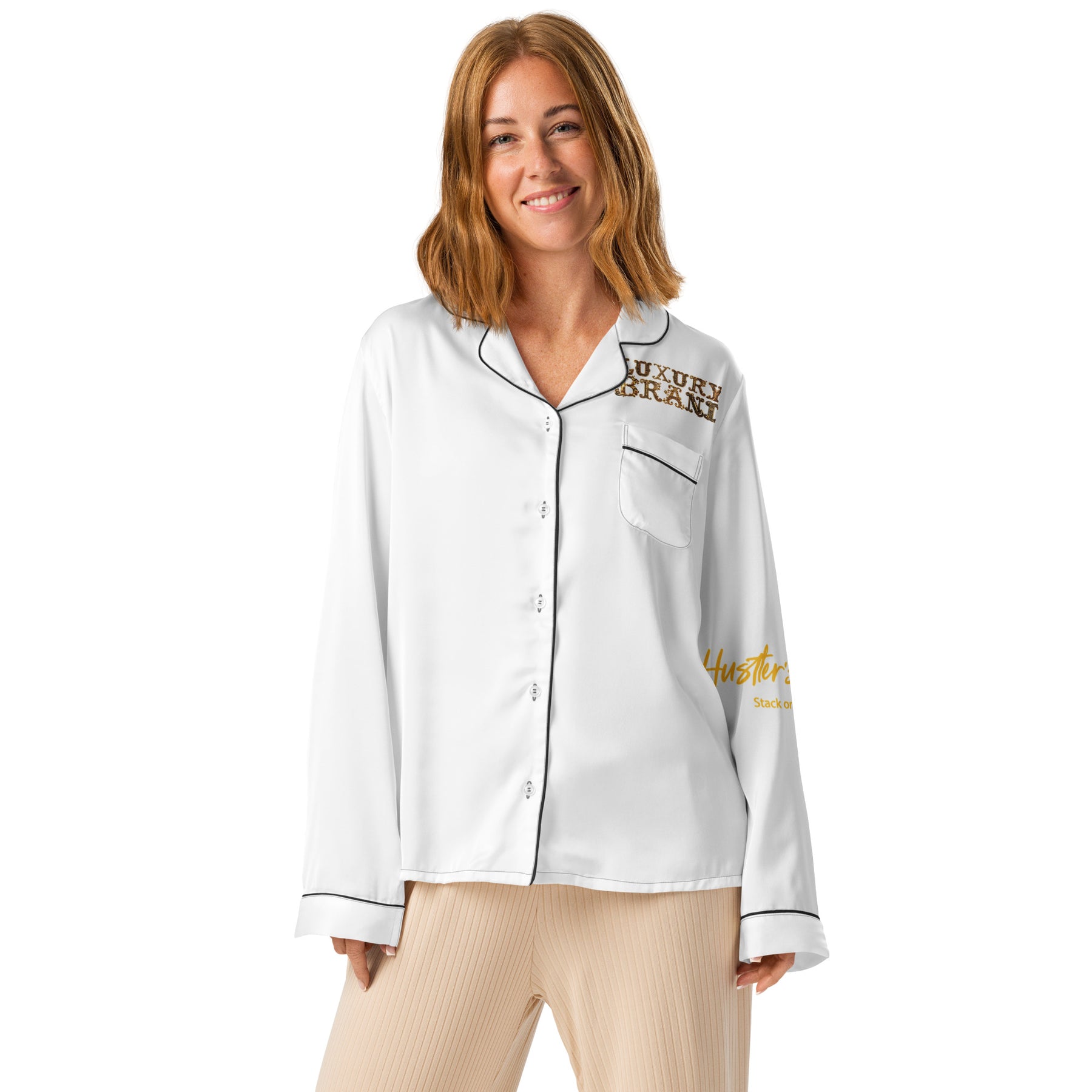 This silky pajama top is ideal for a cozy day when you want to feel both comfortable and elegant. It features a relaxed fit, chest pocket, and elegant piping detail.